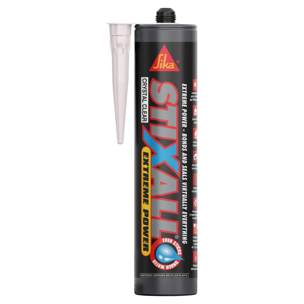 Sika Stixall® Crystal Clear is a one part, chemically curing sealant and adhesive combining the best qualities of silicone and polyurethane technologies. It is specifically designed for adhering most common building surfaces to each other and themselves.
